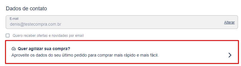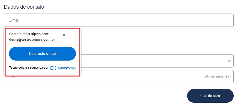 Ao acessar uma página que os seus dados de navegação não estão salvos, é só digitar o endereço de e-mail vinculado no , em seguida seu cadastro será identificado e aparecerá a opção para prosseguir com a compra usando-o .